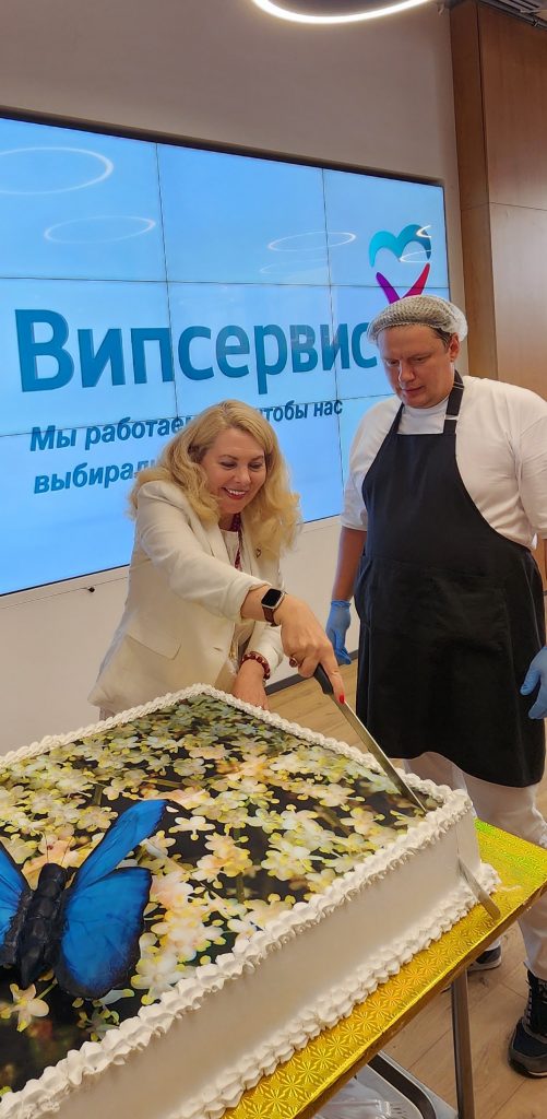 День рождения — это всегда праздник, который собирает близких. И отмечали его в Медиацентре: красивый интерьер, большая вместимость, отличный звук, качественное видео. И, конечно, в соблюдение всех традиций был большой и вкусный и очень красивый фирменный торт.