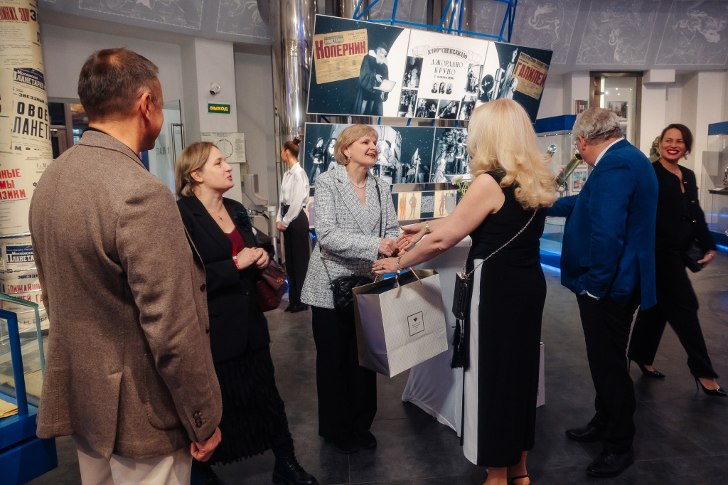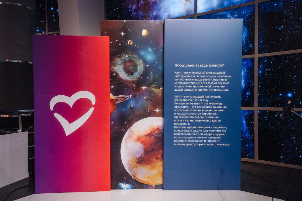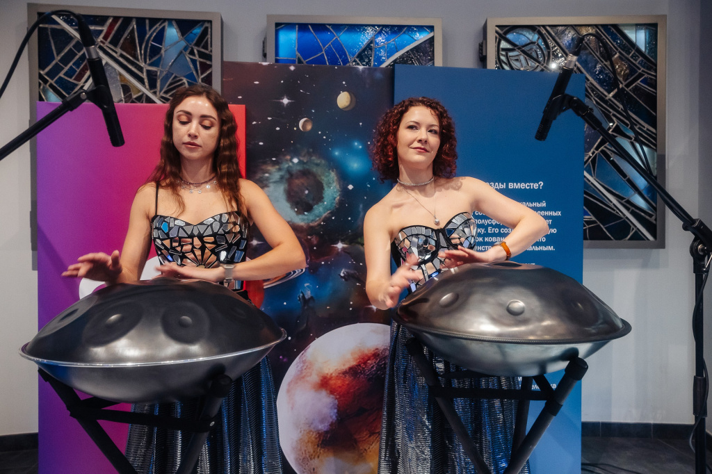 В программе вечера было теплое общение коллег, фуршет, прекрасная музыкальная программа — концерт космической музыки на новейшем в истории инструменте — ханге, в звучании которого сливаются в одну мелодию звуки колокольного звона, падающих капель воды и стальных барабанов. И более известный, но не менее удивительный, терменвокс создавал настроение с помощью электронной игры магнитных волн.